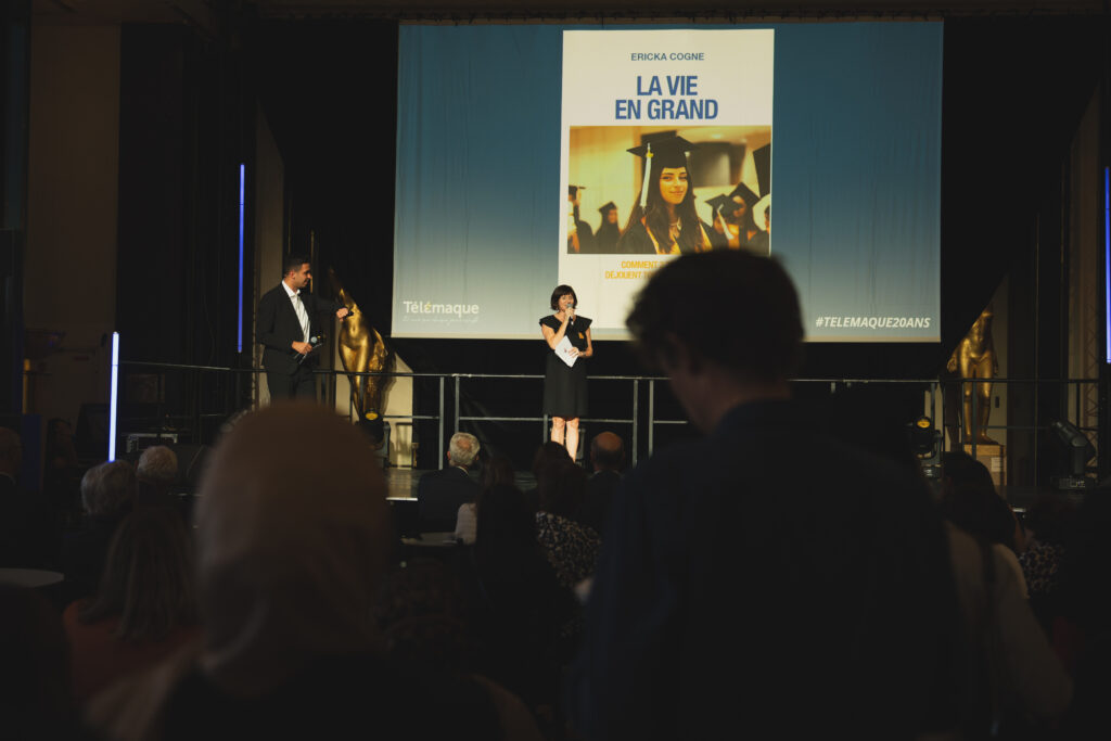 Lors de la soirée, Ericka Cogne, Directrice générale de Télémaque, a dévoilé La Vie en grand, un essai qui rassemble plus de 100 entretiens menés dans toutes les régions d’implantation de Télémaque. Entre récits de vie, difficultés, petites victoires et virages réussis, l’ouvrage donne la parole aux jeunes, aux familles, aux enseignants et aux mentors et trace une vision optimiste : une jeunesse qui s’épanouit pleinement et d’une société entière qui se construit sur les valeurs de solidarité et de réussite partagée.