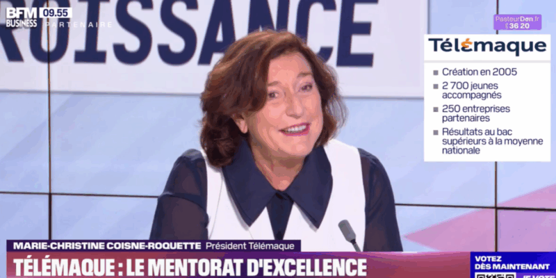 Le 12 octobre 2025, Marie-Christine Coisne-Roquette était reçue par Vincent Touraine dans le cadre de l’émission Objectif Croissance diffusée sur BFM Business à l’occasion des 20 ans de Télémaque. Président de l’association depuis 2024, Marie-Christine Coisne-Roquette est revenue sur : les principaux résultats d’impact de Télémaque la parution du livre de...